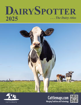 The 2025 DairySpotter is an updated and enhanced resource for locating dairies in 8 States, Arizona, California, Colorado, Idaho, Kansas, New Mexico, Texas, and Utah. The 2025 edition contains over 1,000 dairies. Each dairy includes the available contact and demographic information, as well as GPS coordinates for providing precise driving directions. A Buyer’s Guide is included to assist in finding businesses specializing in products and services to the dairy industry. |